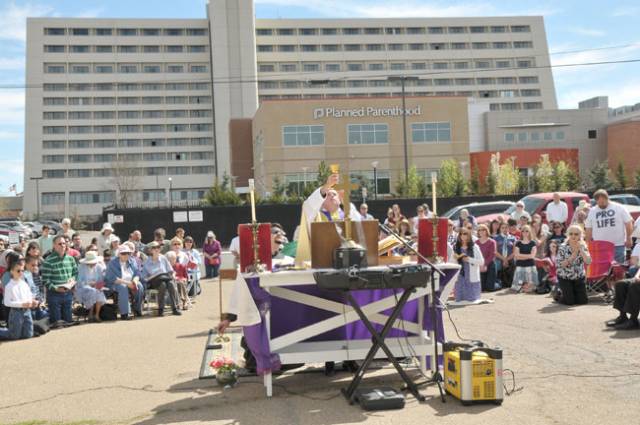 DENVER, CO, April 23, 2012 (LifeSiteNews.com) – Prayerbooks, rosaries, and pro-life pamphlets are a common sight outside Planned Parenthood’s massive facility in downtown Denver, but this year, local organizers of this spring’s Forty Days for Life campaign decided that one last piece was missing to bring the light of Christ to the country’s second largest abortion facility: the Holy Sacrifice of the Mass.